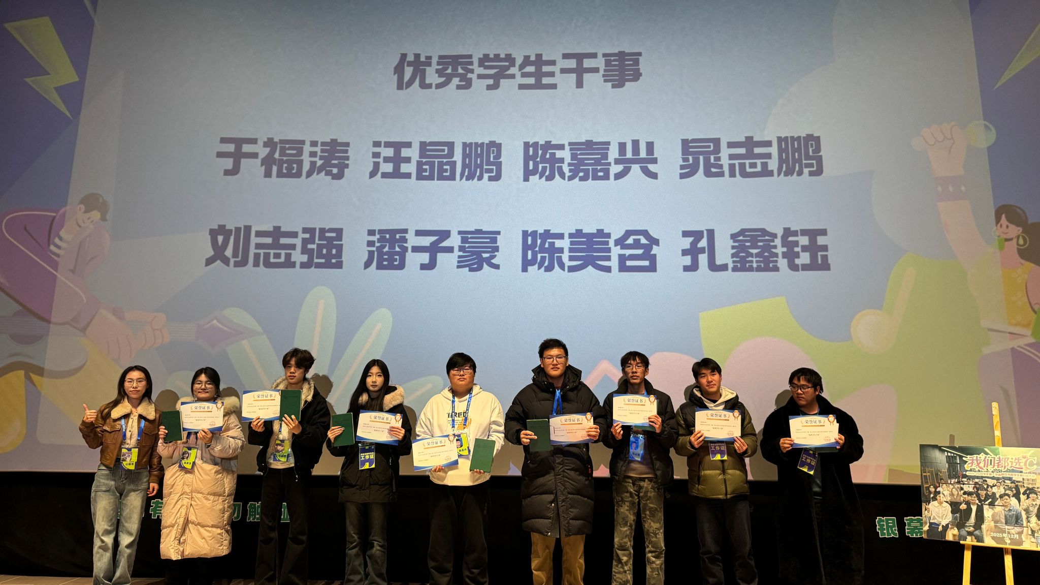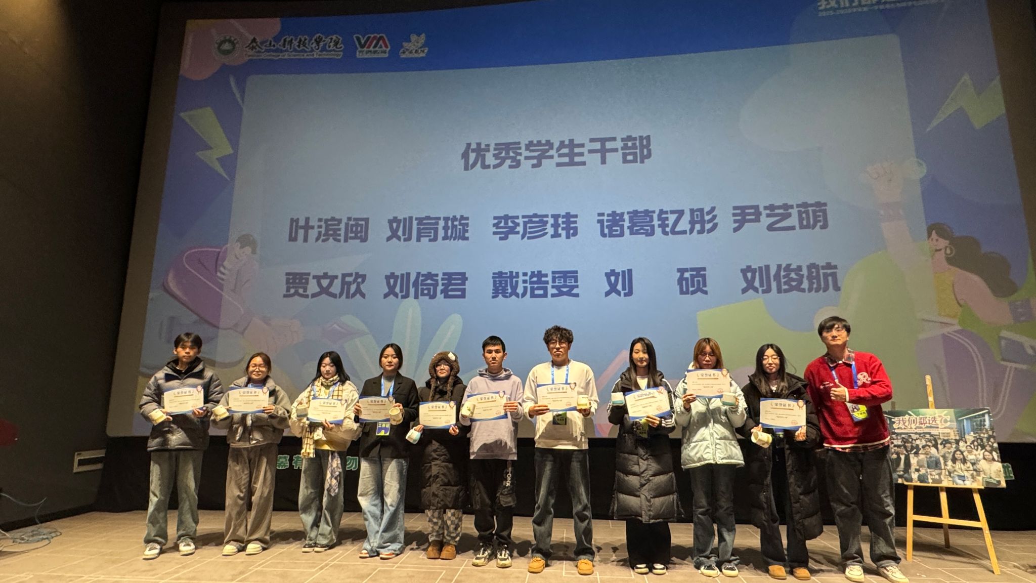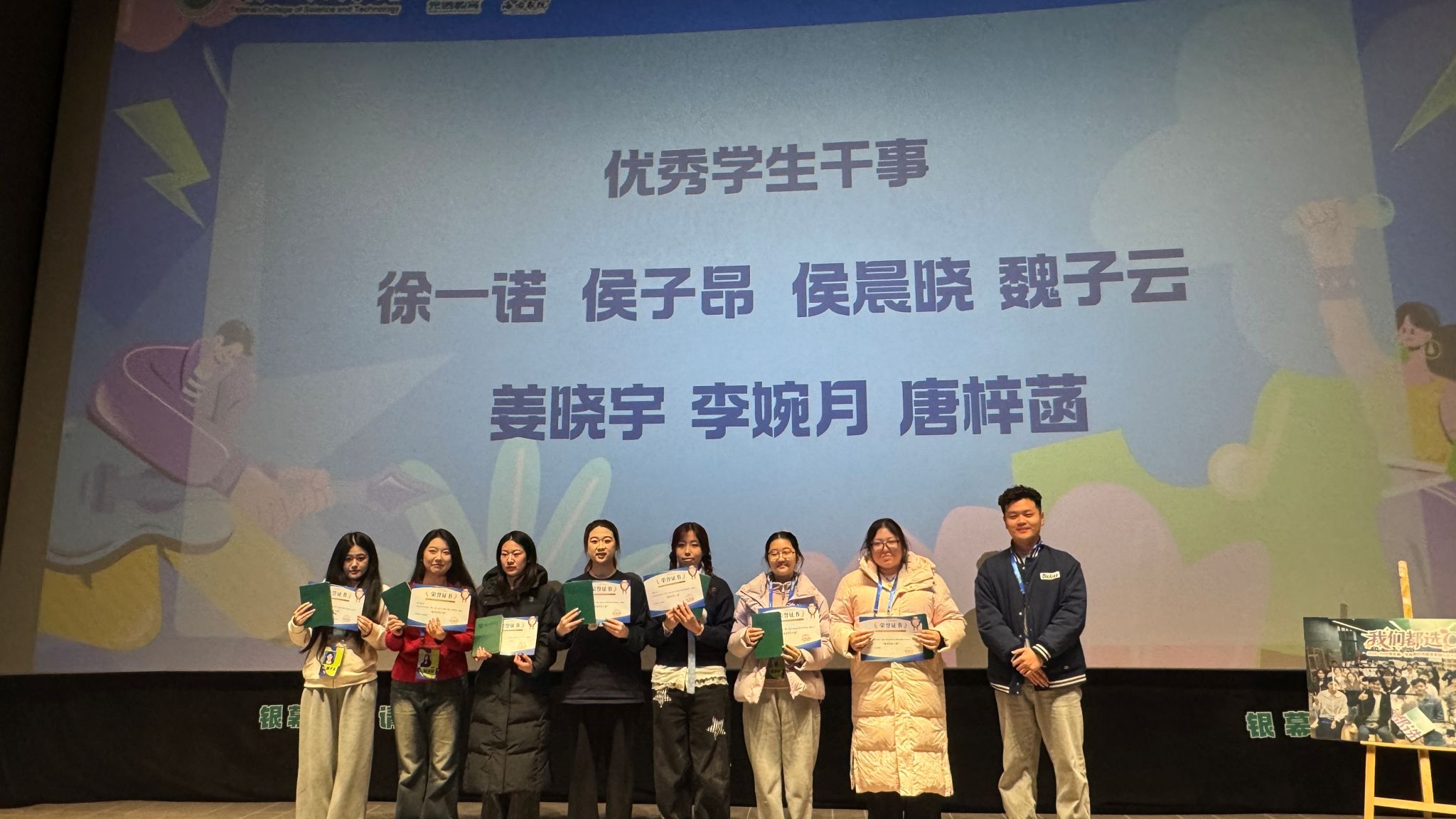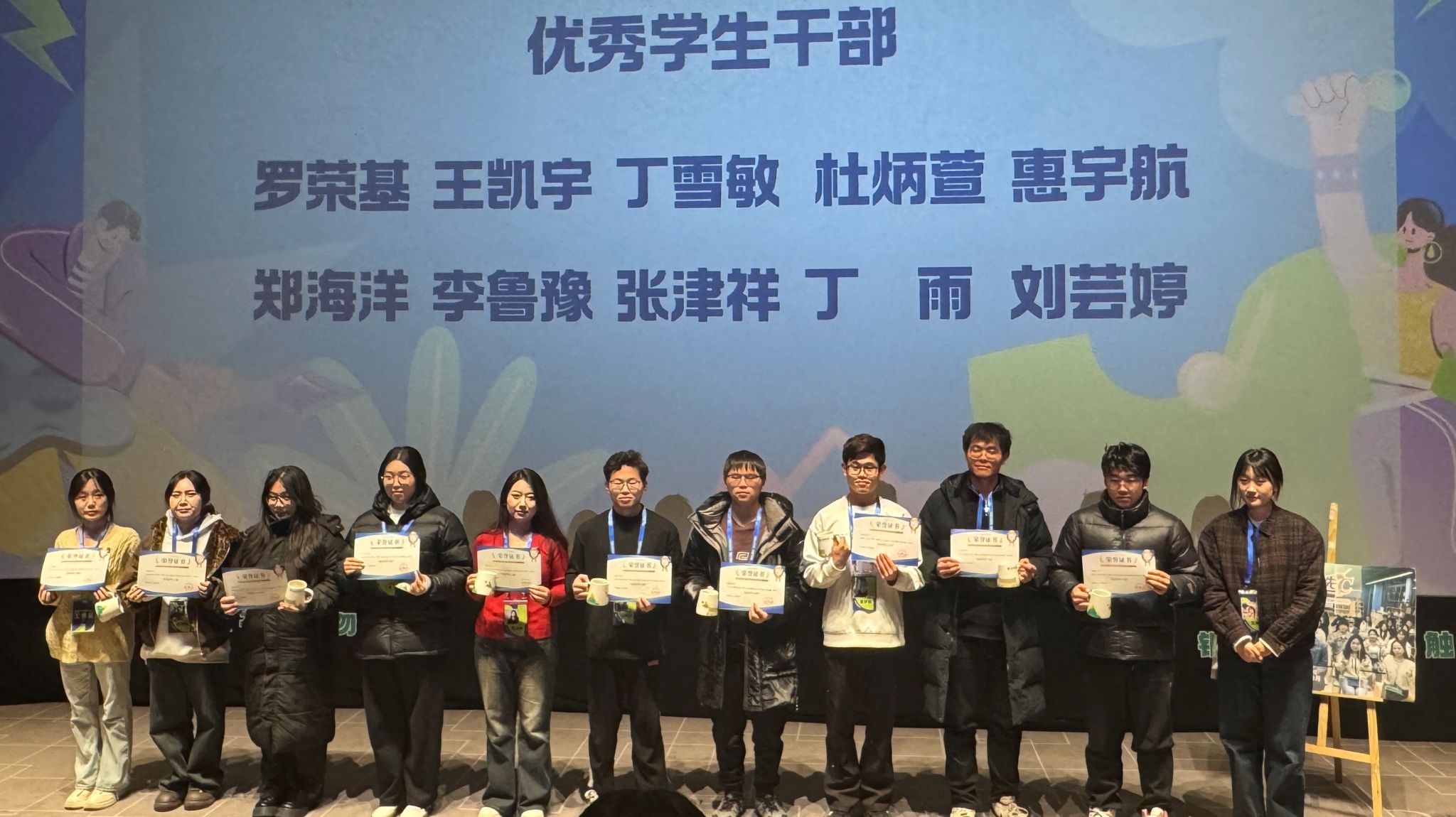 随后,陈治宇老师宣读了优秀学生干部及干事名单,表彰在组织工作中表现优异的同学,号召海右书院全体学生以先进典型为榜样。书院教师团队为获奖的优秀学生干部和干事颁发荣誉证书。红彤彤的证书,是肯定的勋章,更是期许的火炬,激励着全体成员见贤思齐,继续前行。