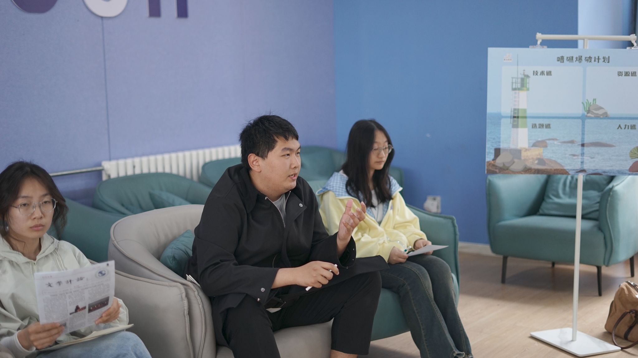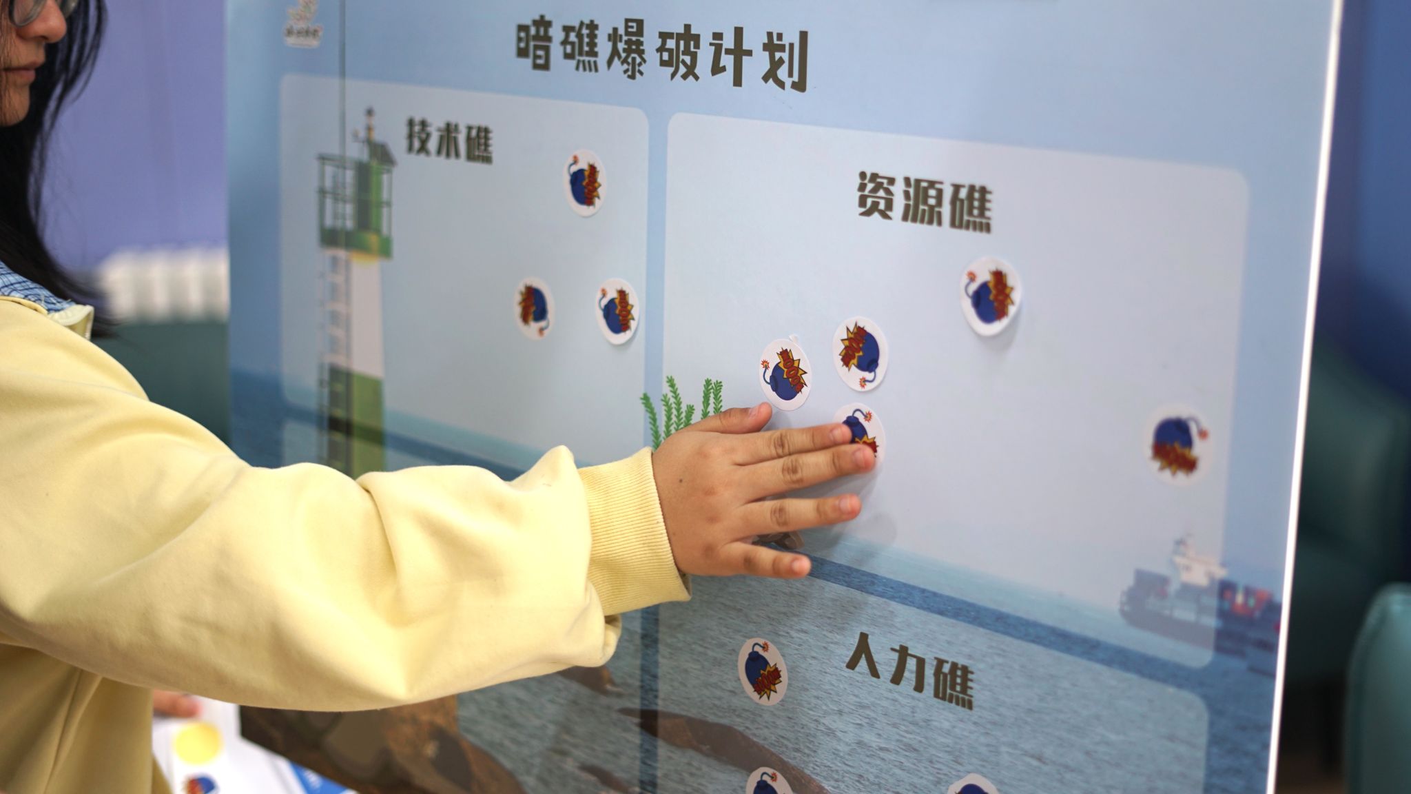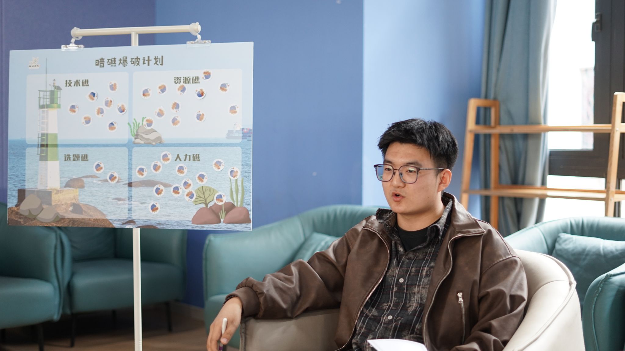 面对“技术礁”“人力礁”“资源礁”“选题礁”四大板块,各工坊用手中“暗礁磁贴”投出了自己的困惑。现场统计显示,“人力礁”与“技术礁”成为最密集区域,而“选题礁”虽贴者不多,却被海右书院发展导师陈治宇老师点破:“选题少不代表没困难,恰恰说明你们太‘稳定’了,需要突破舒适区,找到新赛道。”