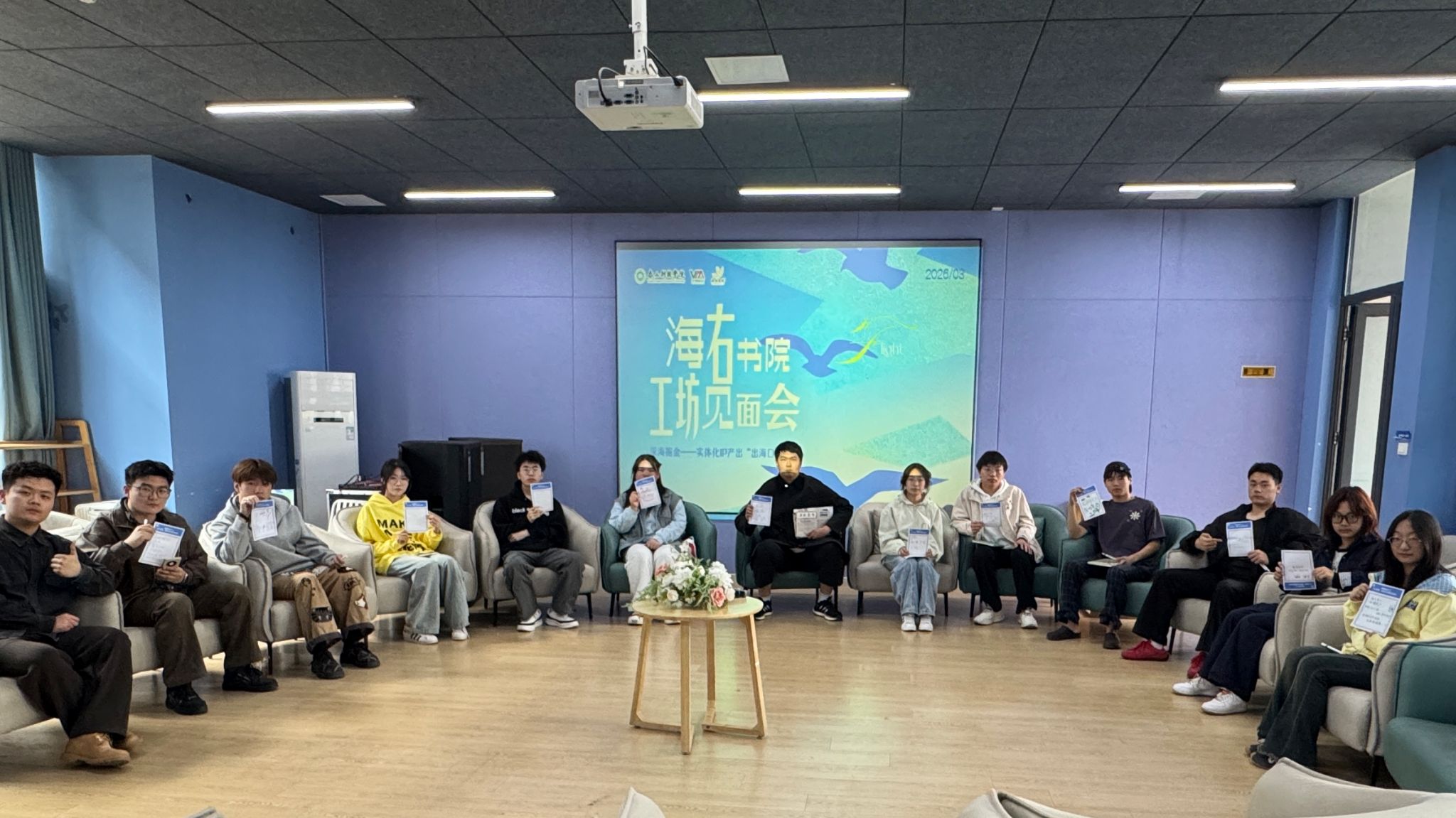 3月27日14:30,海右书院109房间内座无虚席,一场别开生面的工坊见面会在此举行。与以往不同的是,这次会议没有老师“坐镇”,只有各工坊学生主理人与海右书院发展导师陈治宇围坐一堂,以坦诚交流的方式,直面工坊运行中的真实痛点,在思想碰撞中探寻从“想法”到“产出”的转化路径。