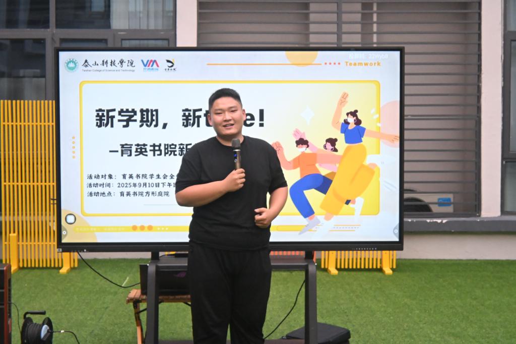 育英发展导师陈鹏话语满是力量:“看到大家充满活力的样子,我特别欣慰!做学生工作不用怕犯错,关键是要有‘干就完了’的精神态度,敢想敢做才能有收获。”育英书院发展导师杨雅楠则表示育英书院的发展情况,强调了书院团队由新老成员组成,要像家庭般团结协作,以提升书院活动质量。”育英书院发展导师李梦佳特别聚焦“分享”的力量:“我想和大家说,在书院里走的每一步都算数,每一次开口交流、每一回经验传递都有意义。无论是分享你的想法、困惑,还是成长中的小故事,这些看似平常的‘分享’,都会串联成我们彼此支撑的力量,也会让每一步书院成长路,都走得扎实又有温度。”育英书院发展导师梁斐以“欢迎”与“期许”为关键词,向新加入组织的干部表示欢迎,同时也鼓励大家:“育英是一个充满机会的平台,希望大家能在这里找准自己的定位,发挥自己的优势,与书院共生共长。”