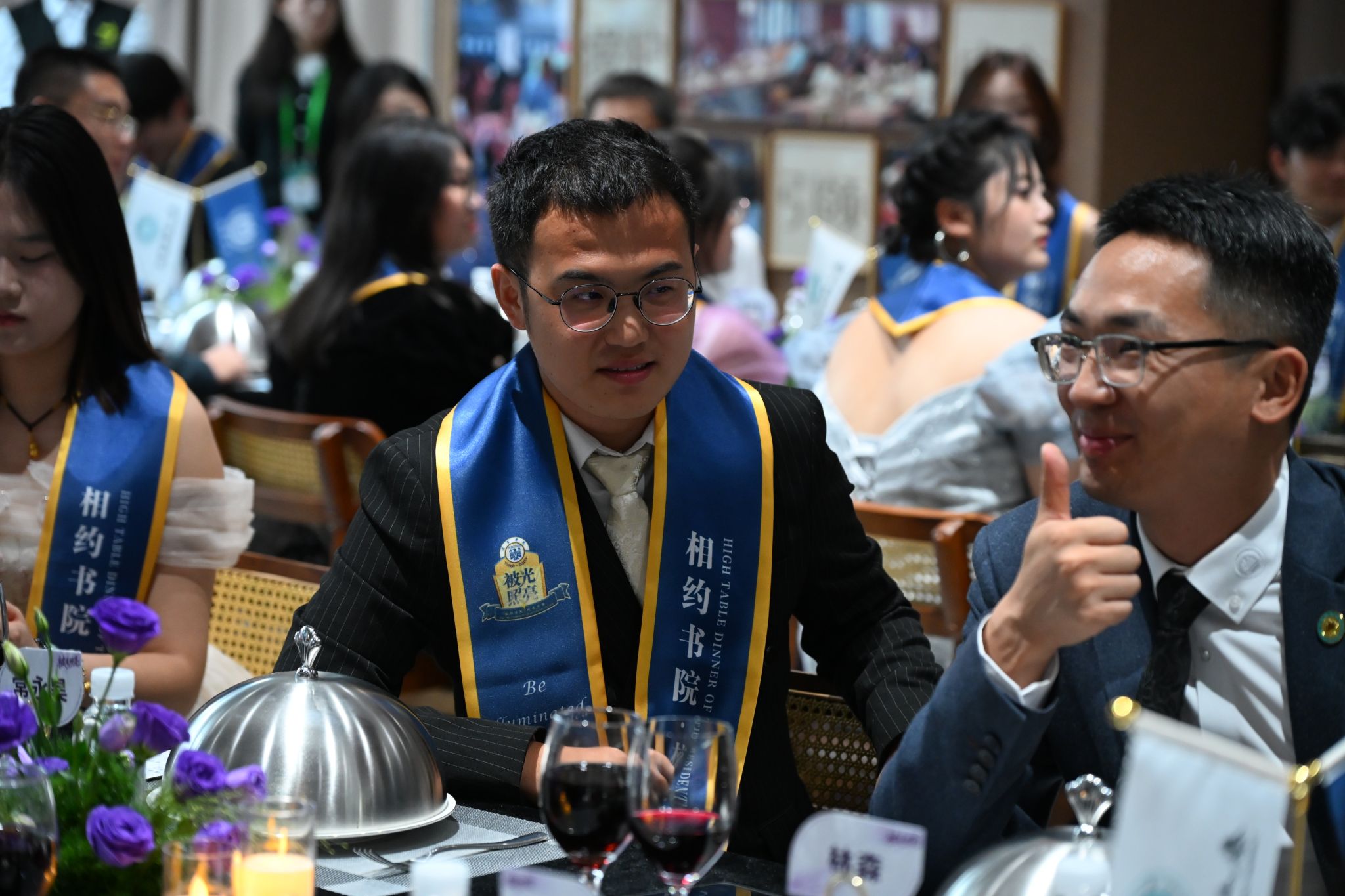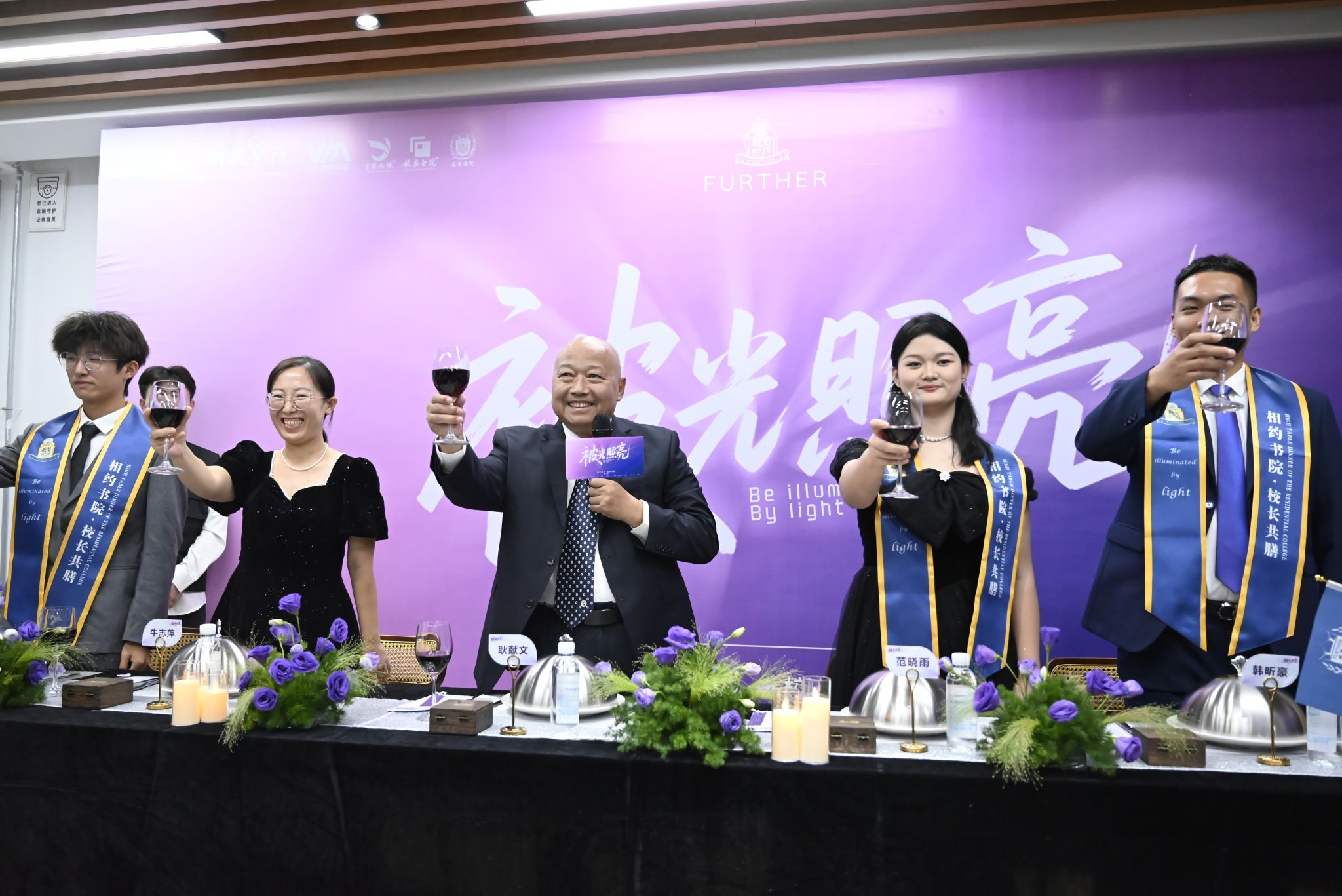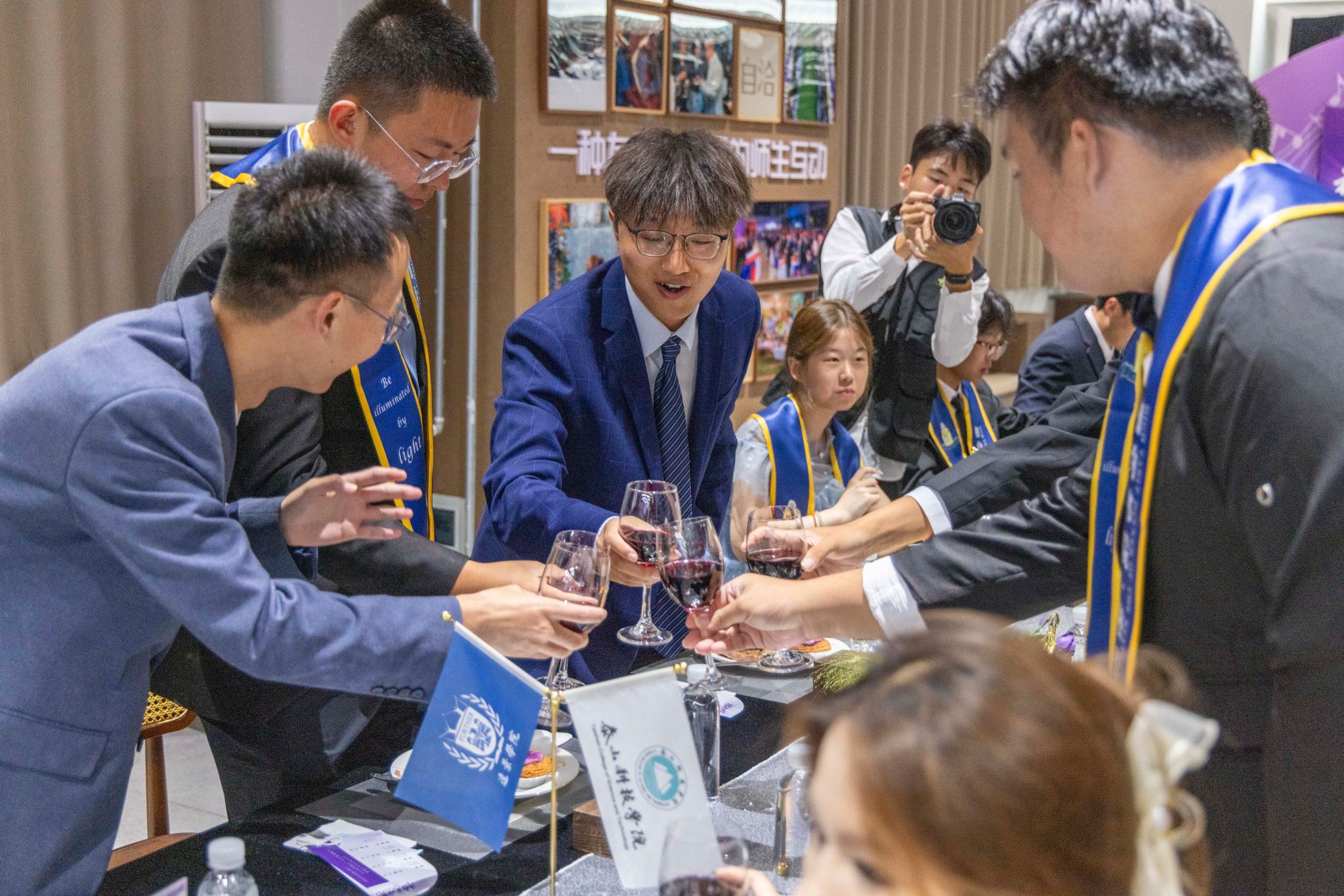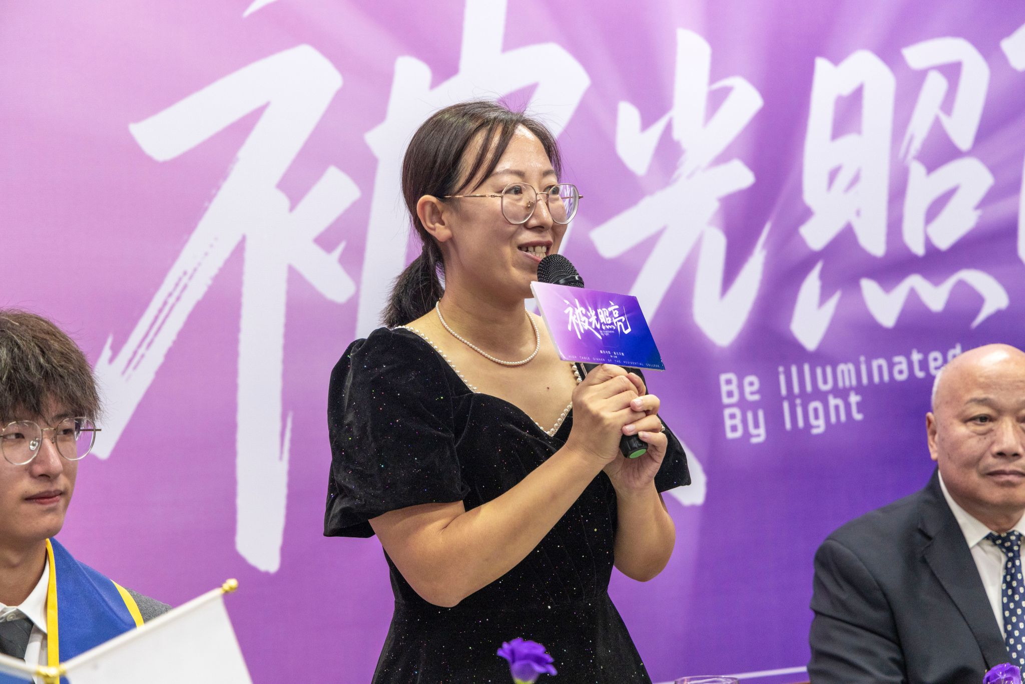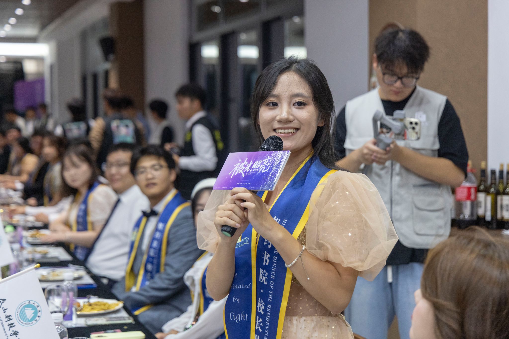 刚才校长亲自给我戴上绶带的时候,很激动,我也拥有和校长的合影了。和老师们一起吃饭聊天,听他们讲自己的故事,也听同学们分享,感觉特别亲切,一点距离都没有。最让我感动的是大家一起朗诵苏轼的《水调歌头》,还有牛院长对我们说“你本身就是光”的那一刻,我突然懂了,这束光不是什么大道理,就是这份实实在在的尊重和信任。