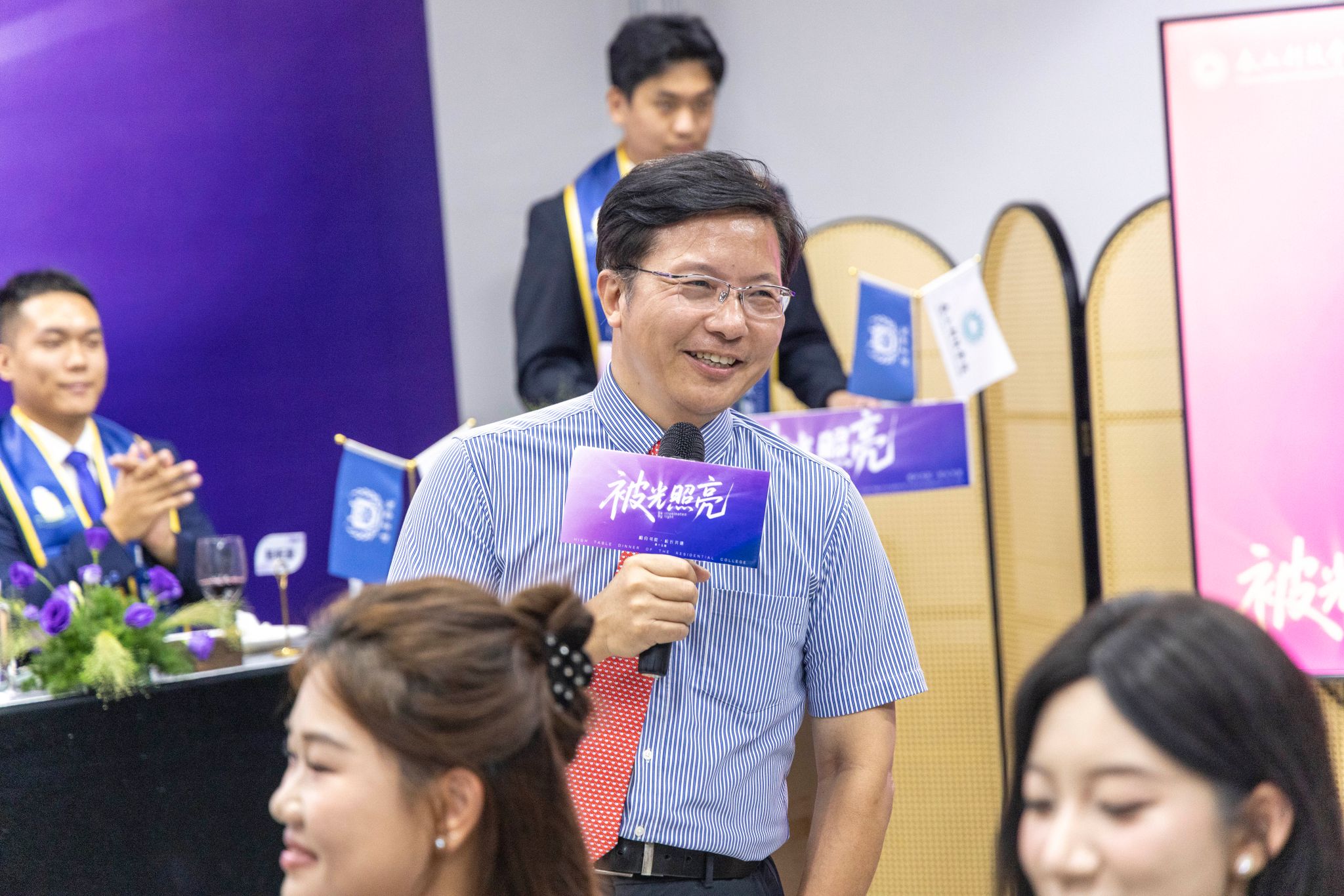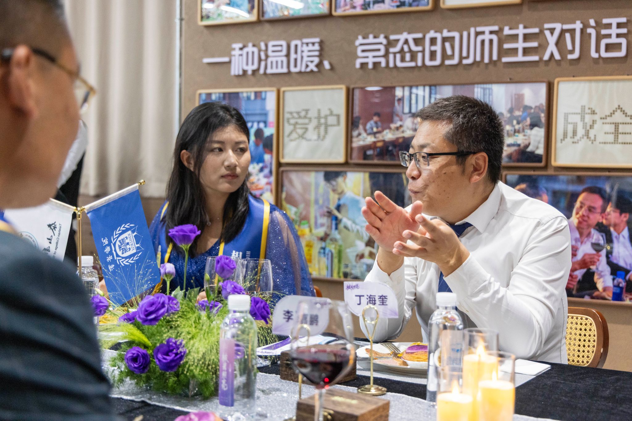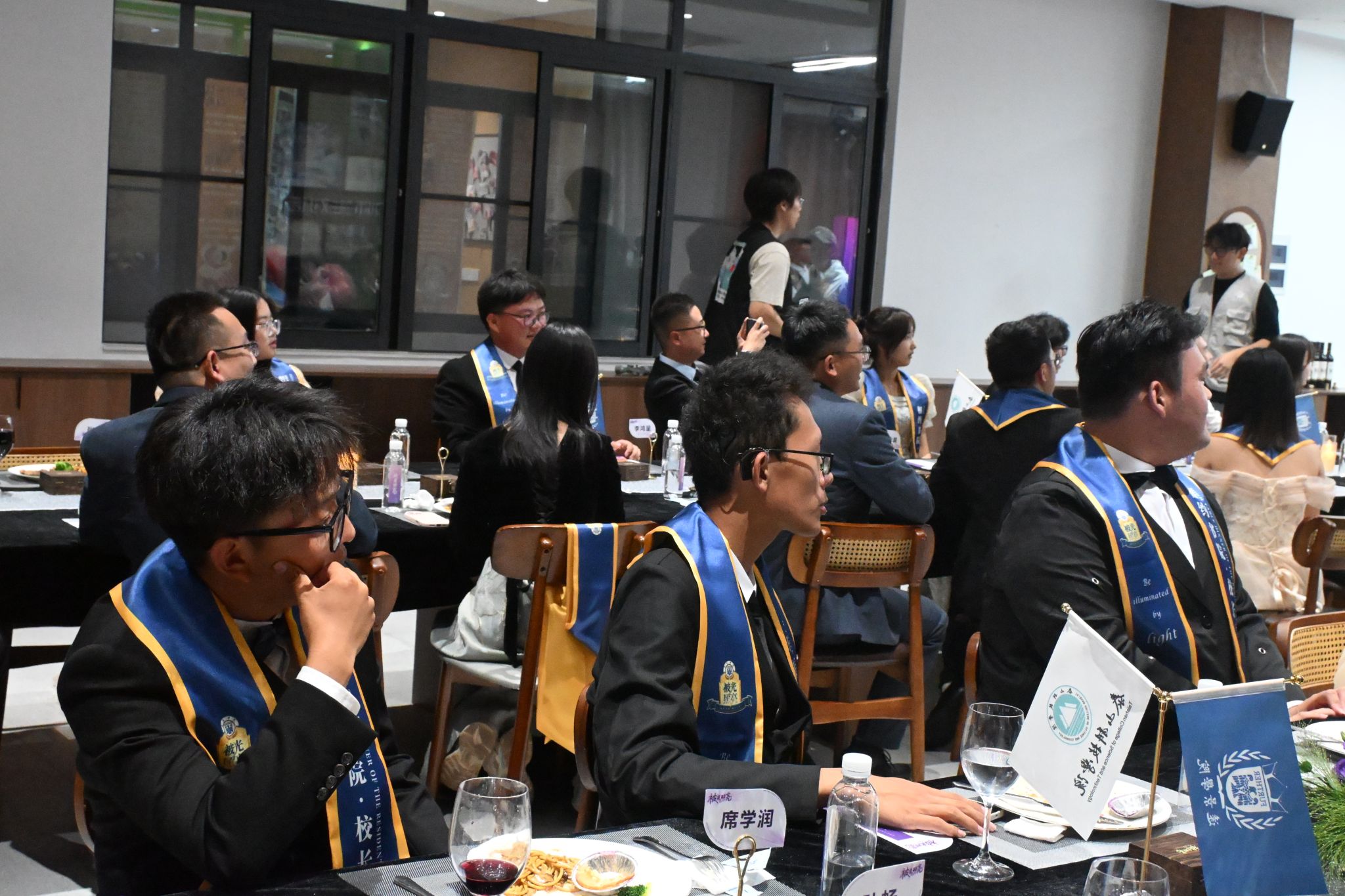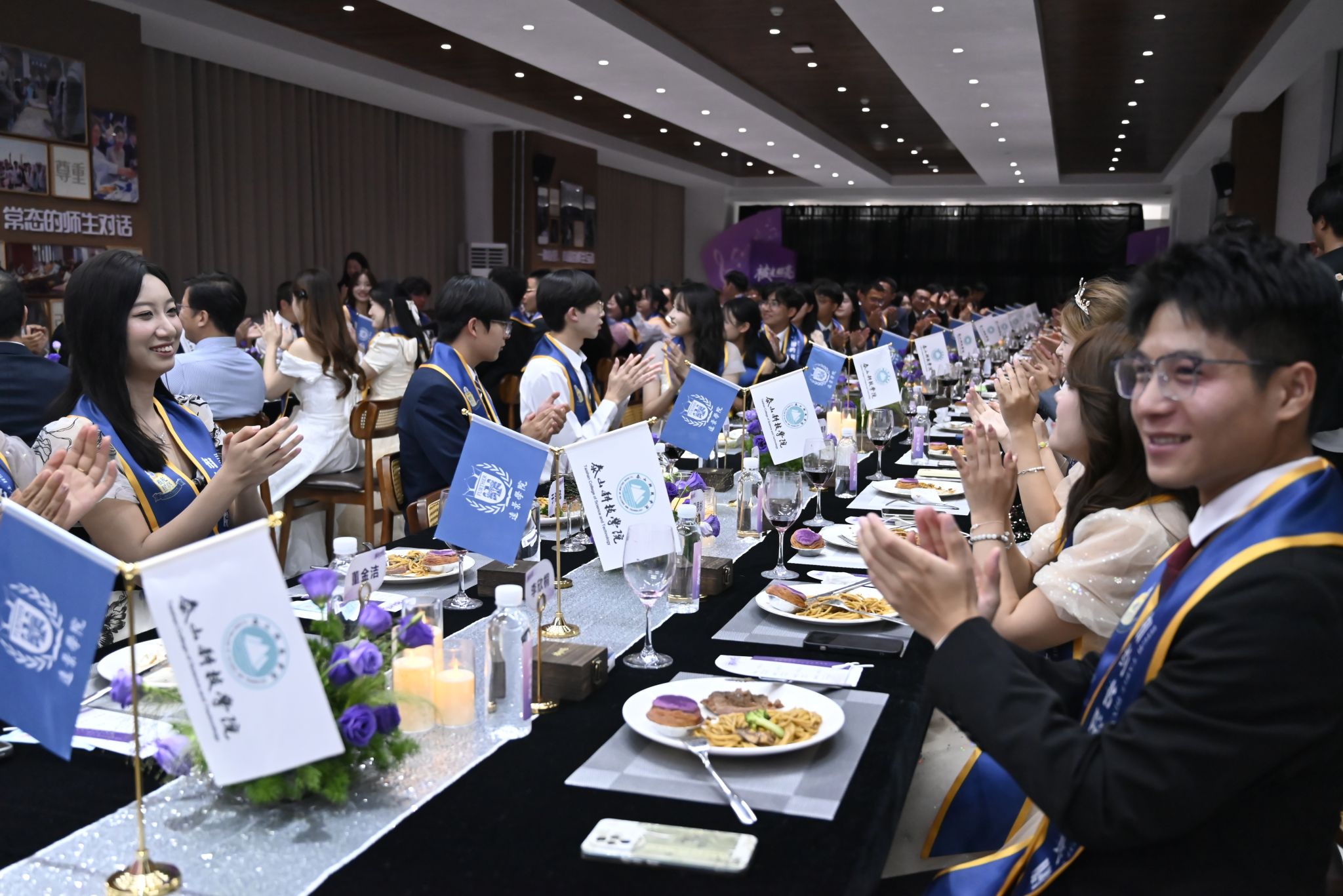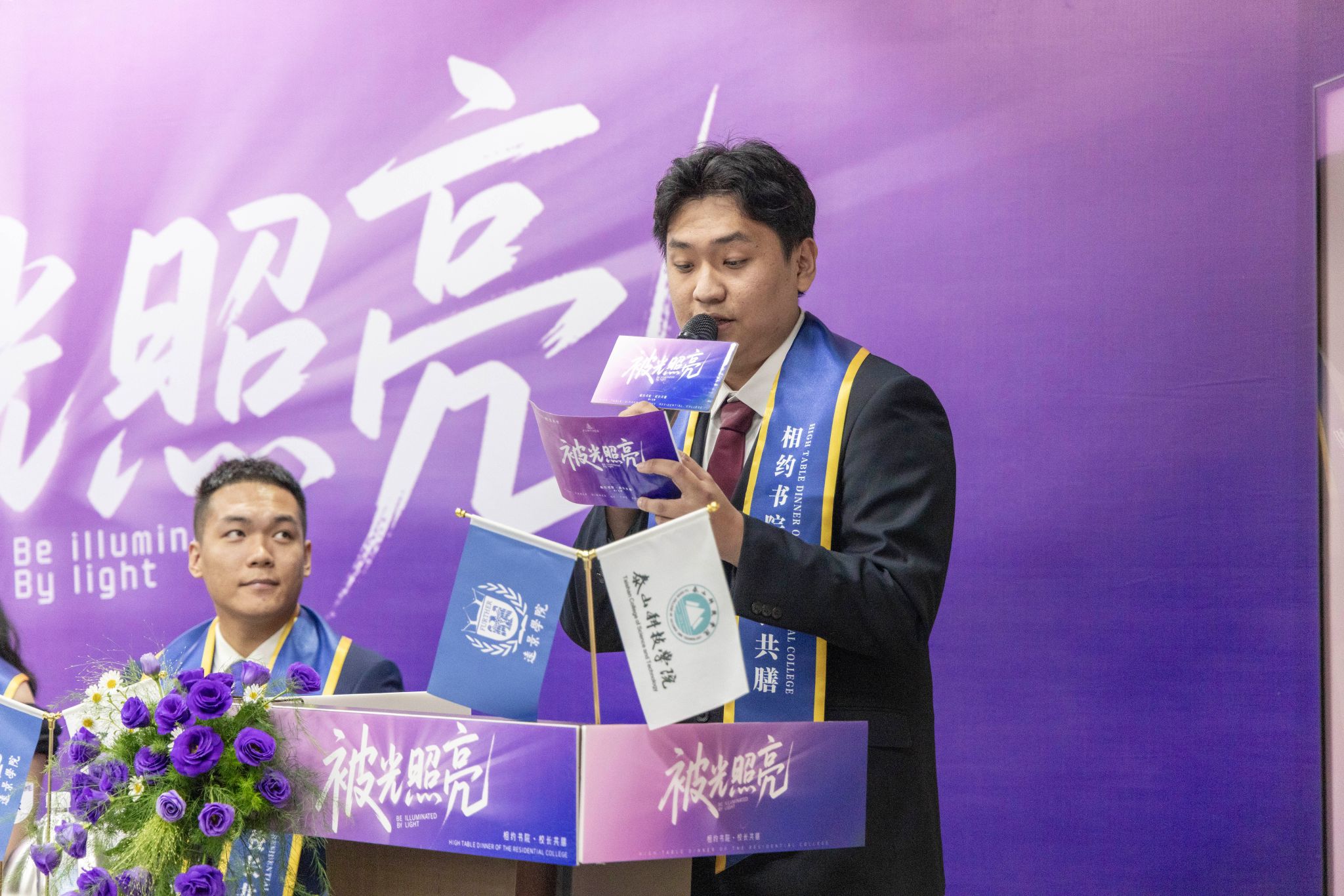 刚才校长亲自给我戴上绶带的时候,很激动,我也拥有和校长的合影了。和老师们一起吃饭聊天,听他们讲自己的故事,也听同学们分享,感觉特别亲切,一点距离都没有。最让我感动的是大家一起朗诵苏轼的《水调歌头》,还有牛院长对我们说“你本身就是光”的那一刻,我突然懂了,这束光不是什么大道理,就是这份实实在在的尊重和信任。
