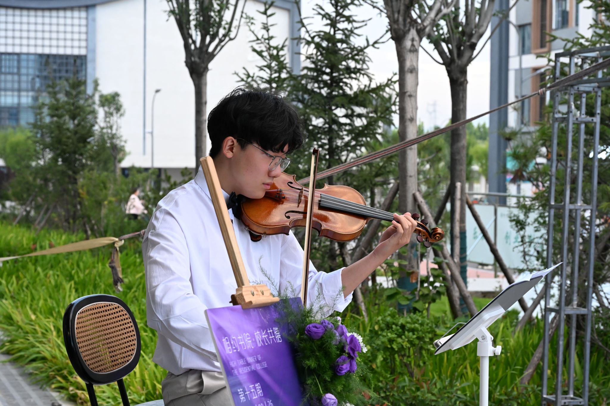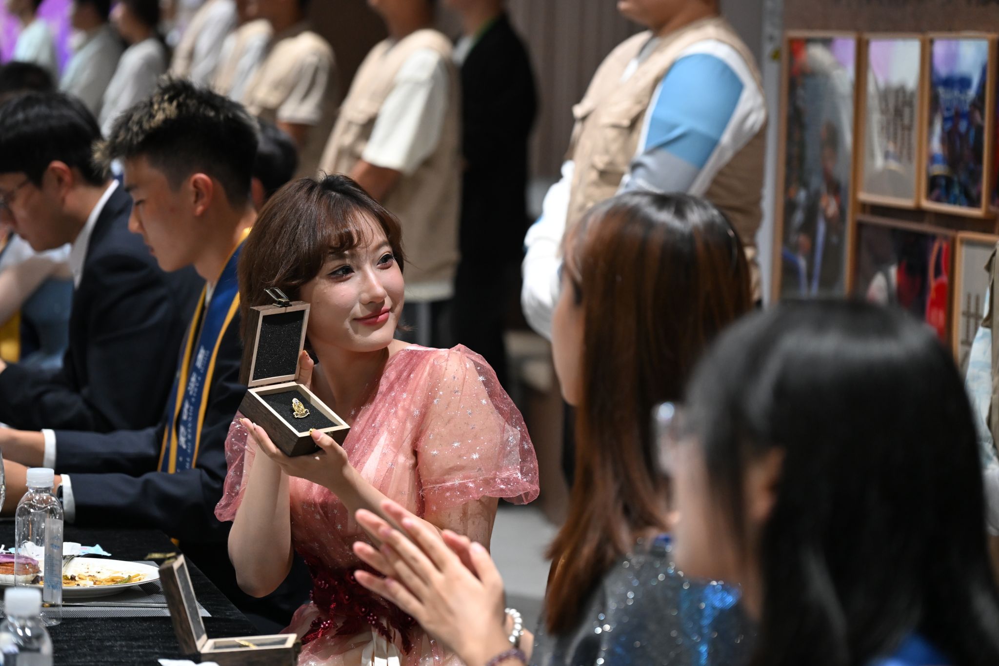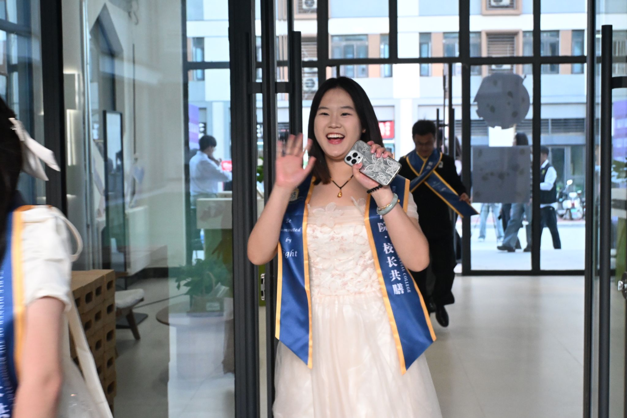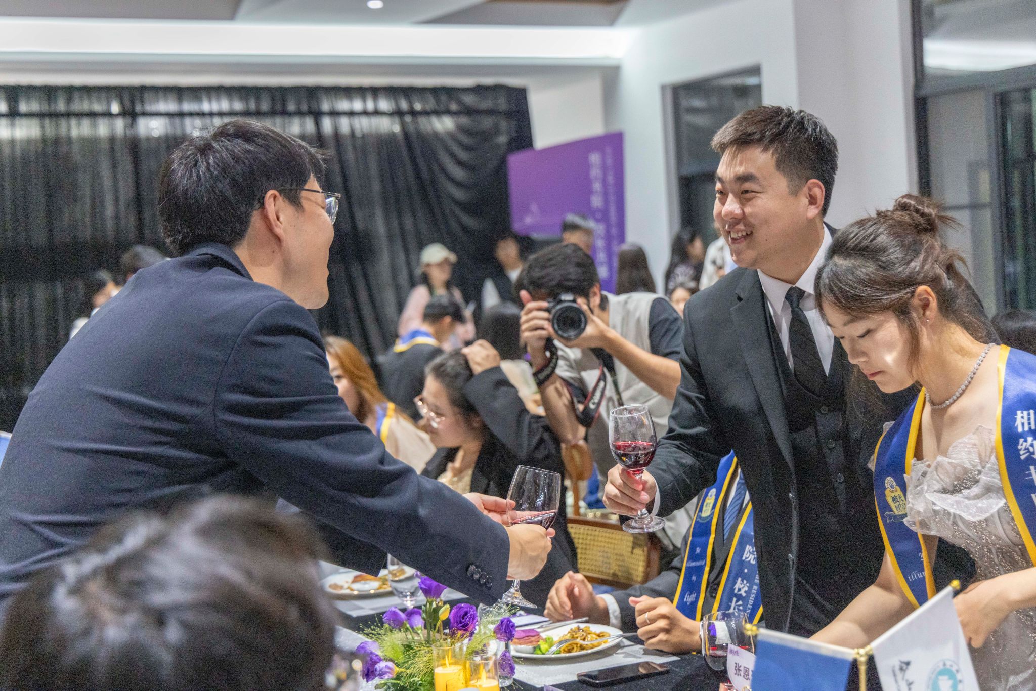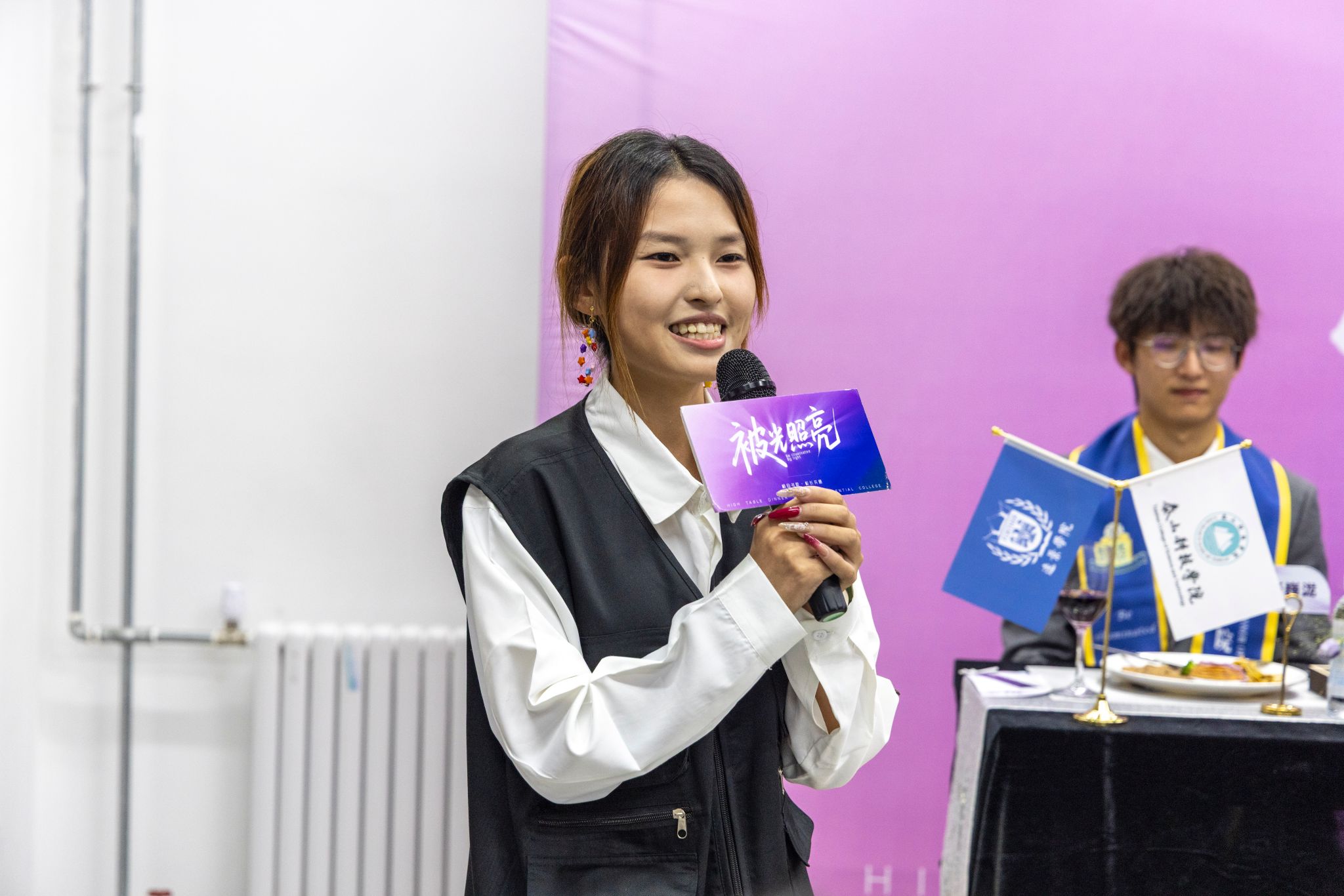 刚才校长亲自给我戴上绶带的时候,很激动,我也拥有和校长的合影了。和老师们一起吃饭聊天,听他们讲自己的故事,也听同学们分享,感觉特别亲切,一点距离都没有。最让我感动的是大家一起朗诵苏轼的《水调歌头》,还有牛院长对我们说“你本身就是光”的那一刻,我突然懂了,这束光不是什么大道理,就是这份实实在在的尊重和信任。