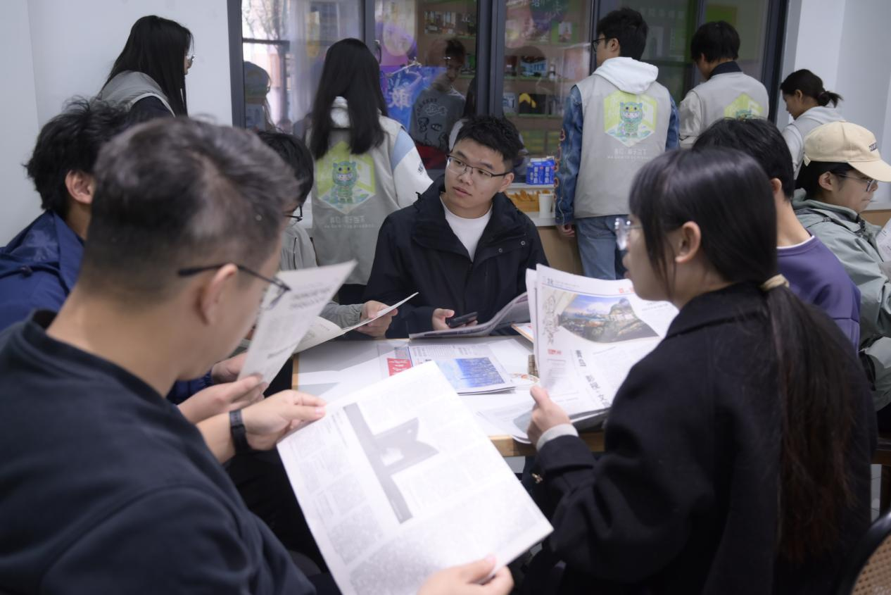 蜂巢餐厅内,暖意与思绪一同流淌。蜂巢餐厅内,师生们沉浸于阅读与交流,多位同学分享了他们的读报感悟。来自五汶书院/行政管理学院的匡华欣从“美育育人”的报道,联想到书院的舞狮、扎染与蜂巢餐厅本身的空间之美,“我虽然不是艺术专业的学生,但是在书院,总能感受到书院里的美,舞狮之美、扎染之美……。在这所学校,学到的远比书本上的知识更有‘美感’”。