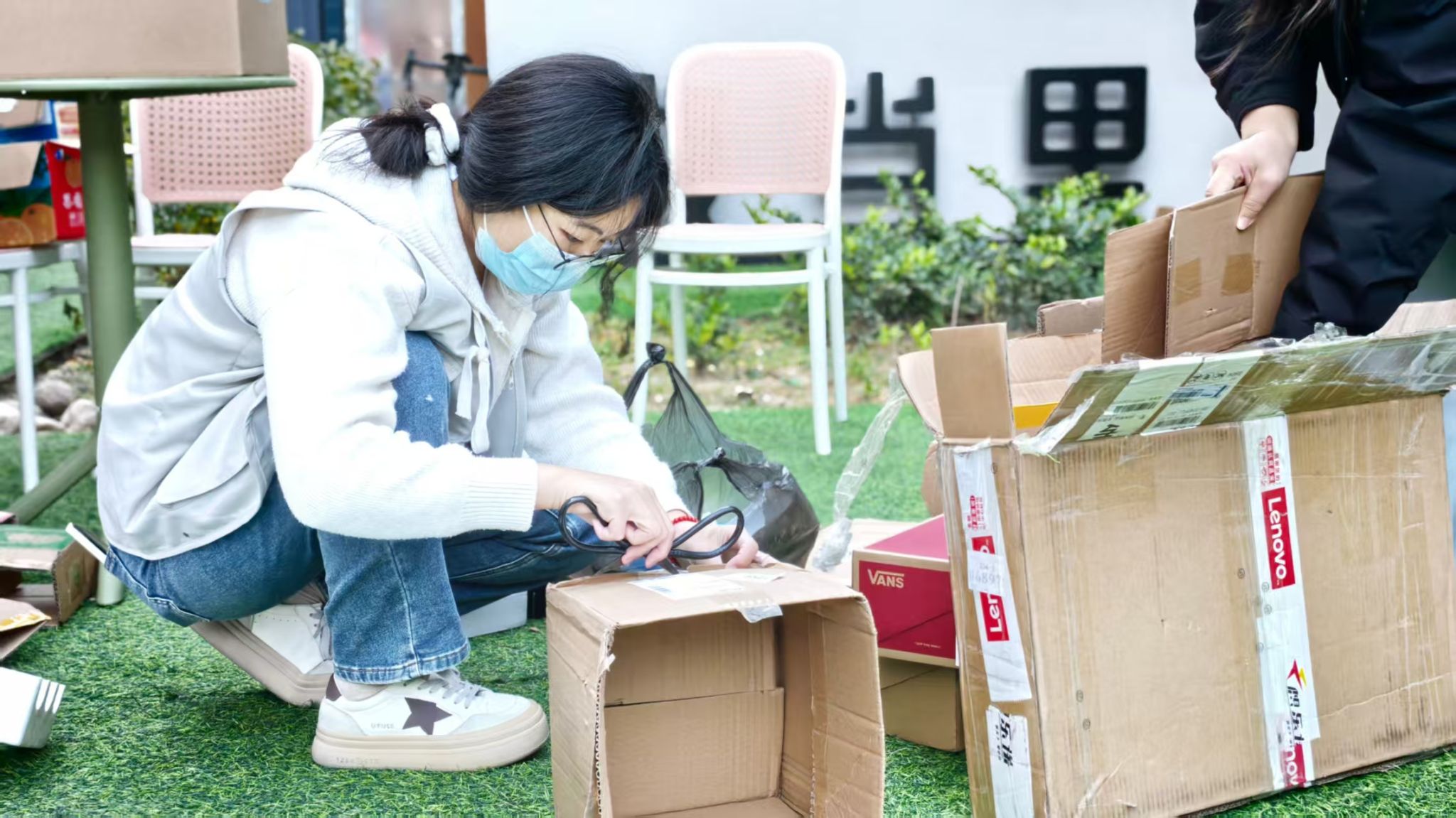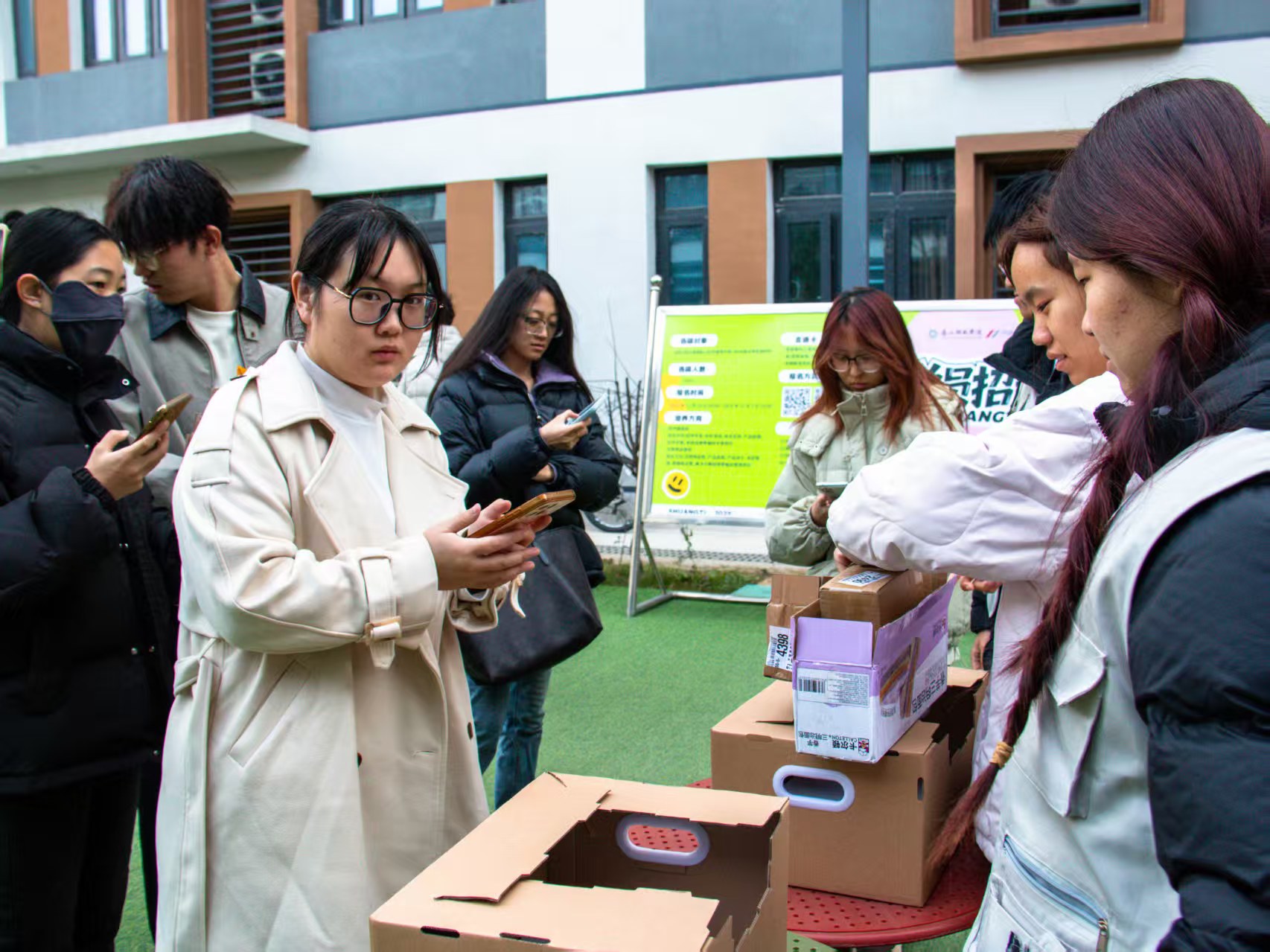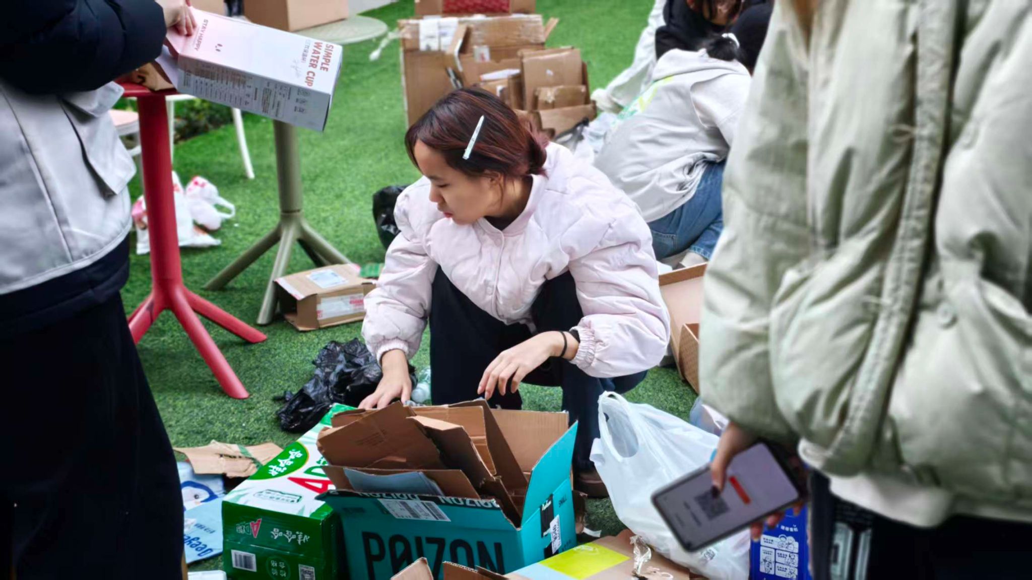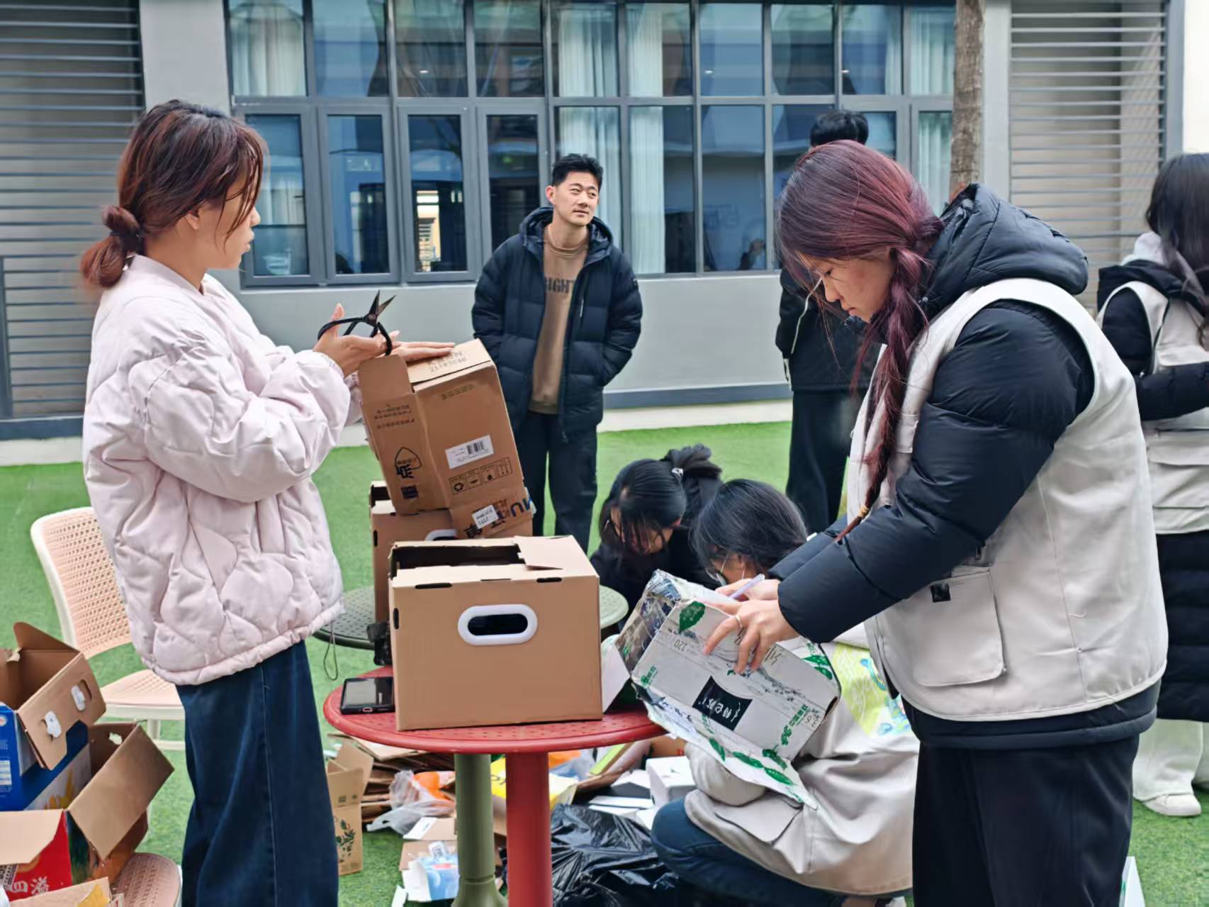 不少同学这次已是“回头客”。敢当书院/淬炼商学院的李明哲抱着攒了一周的纸箱,笑容满面地说道:“就等着今天呢,终于能给它们找个好去处了!”东岳书院/大数据学院的韩鑫泽也早早拎着大包闲置物品赶来,他已是第二次参与,“既然低碳不能只靠口号,那就把偶尔的行动,变成我们常有的习惯。更何况这次还是为了给我们自己办生日会。”活动组织者五汶书院/艺术传媒学院的杜涟漪也笑着说到:“这样的回收活动一次次办下来,不仅让环保成了习惯,也让我们觉得,低碳循环,就是这样一点一点亲手建起来的。”