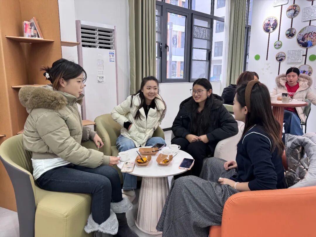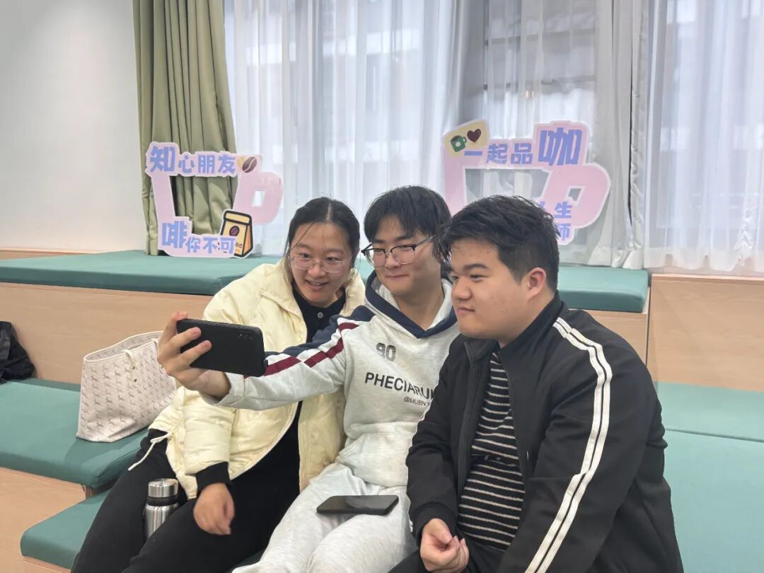 活动现场没有固定流程,师生们或站或坐,手捧咖啡,轻松交谈。海右书院/建筑工程学院的王荟硕笑着说:“这真是个新奇又温暖的活动,像寒冷冬季里突然照进来的一束光,不仅暖身,更让人豁然开朗。高凌钰老师看着眼前温馨的场景,分享道:“我们一直希望能创造一个让师生都能停下来的空间。你看,在这样温暖放松的环境里,大家自然而然地就会聊起课堂之外的话题,分享彼此真实的状态。”此刻,咖啡的香气与轻松的笑声交织,那些关于学业、情感与生活的真诚分享,成为了这个下午最动人的收获。