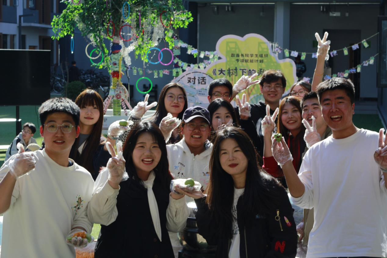 今天我想种一棵槐树。在我的记忆里老家的门前有一棵大大的槐树,所以今天我想在泰安的“家”里种下一棵小小的槐树种子,从最开始抗拒加入学生组织,会因为人际关系和繁琐的工作感到内耗,因为我本身就是一个这样性格的人,可是在我家入书院学生会组织的一年又一年当中身份的转变带给了我不同的感受,也正是因为在学生组织中遇到了大学送给我最好的礼物,就是我最好的朋友韩茹,如果说刚加入学生会的,我是一团被柔软的纸团,那我想他一定是那个慢慢抚平我,我好好放起来的人,现在的我不再纠结于那些让自我产生内耗的小因素逐渐开始变得对任何事情有全面的解决方法现在的我可以自信地说拒绝内耗,从我做起!