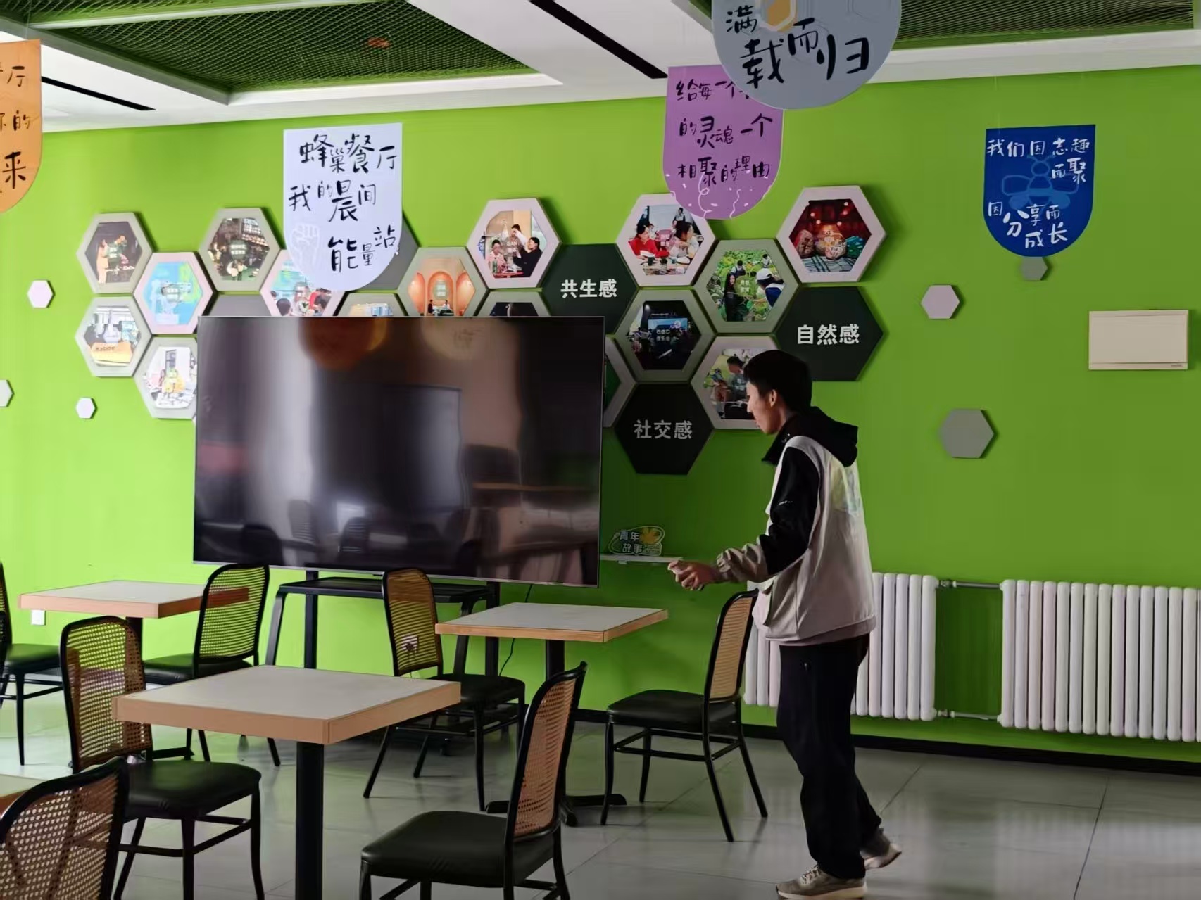 书院里的的电视,大部分时间在为活动服务。可当人群散去,它就成了一个沉默的屏幕。有同学嘀咕:“要是能在这儿玩会儿游戏就好了。”